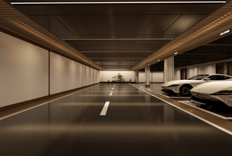 最典型的要数车库入口的“星空顶”,无论是顶板孔洞的分组变化,还是穿孔铝板的透光效果,都严格把控,只为呈现更加真实的“星空”,一路指引归家的路线。