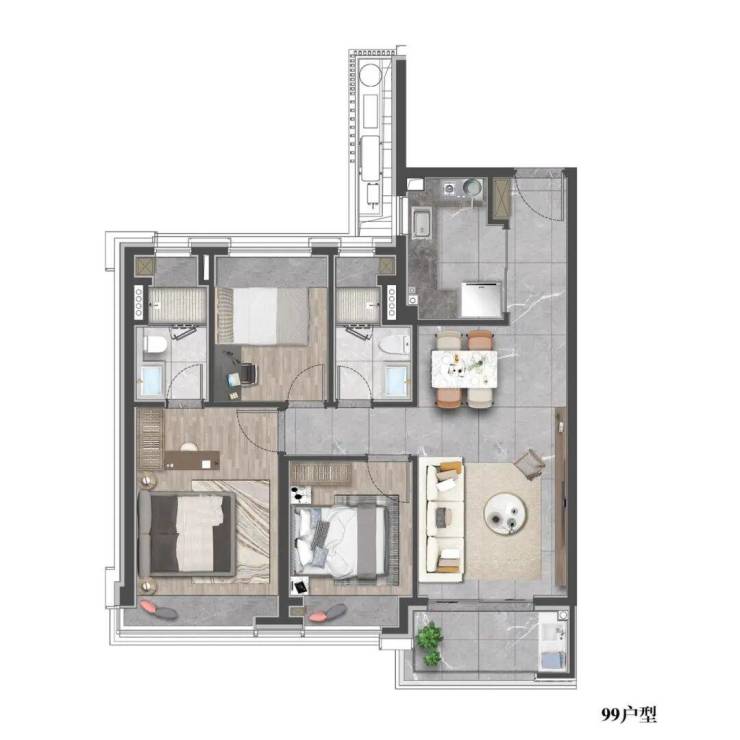 3、 三居室:公房面积:60-90平米;商品房面积:110-150平米;