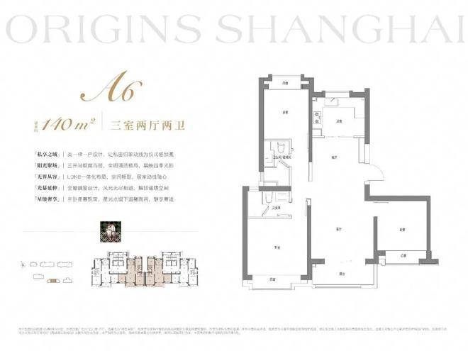 建面约140m²3房2厅2卫:格局上做到三开间朝南+南北通透,让业主起居之间沐浴更多阳光。