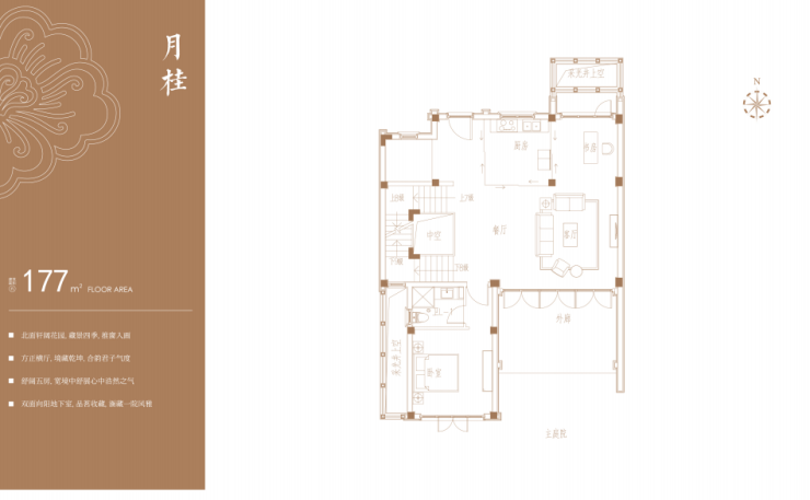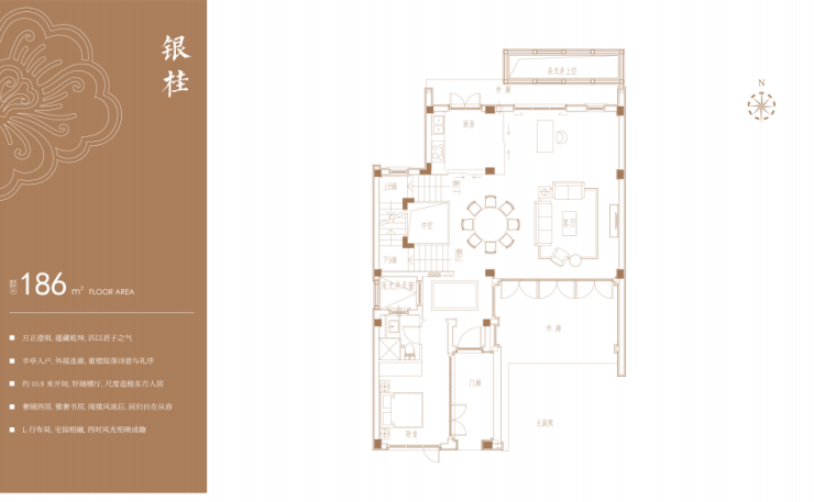 房屋实际可用面积要比户型图标注面积大一些,以“丹桂”户型为例,户型图标注的建筑面积为185m²,但是层高达到9.9m,未来完全可以搭建二层,搭建后,地上使用面积可以达到约280m²左右。