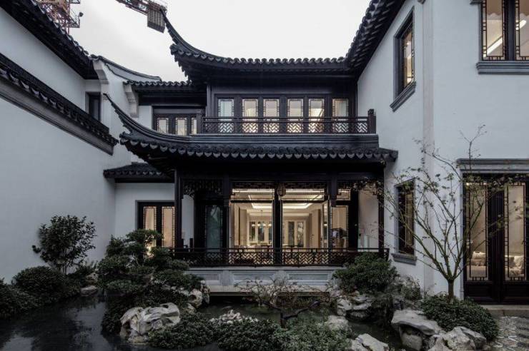 「上海桃花源」汲取了中国园林的真正精髓,还原上海地理特色的江南园林为建筑形式,以符合上海城市恢弘气度的皇家园林为布局规制,形成了特有的“南形北制”的规划特征,并且运用了罕见的纯中式古典建筑风格,取古建礼制,采非遗技艺,结手工定制,将藏品级中式大宅与园林融为一体!