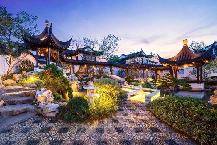 上海桃花源师承苏州园林五进制序列,打造出“迎宾院-主峰院-水溪巷-湖山院-中轴央景”的游园路线。目前,这是中式园林中最富层次的江南园林主轴线,彰显上海桃花源的世家之仪。
