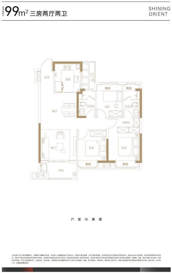 另外99平的户型还是全装修交付,对于后期业主的入住是非常省心的,这个户型格局方正,空间敞亮,适合一家三口居住。
