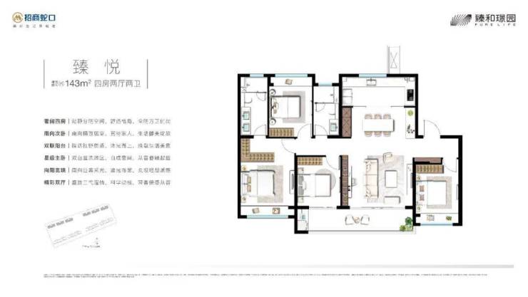 143㎡四房:总价533万-583万,得房率81%-83%,主卧套房设计24