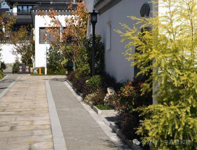 走进院门,用老青石板铺设的园路映入眼帘,两旁是精心修剪的花草树木,错落有致,绿意盎然,中式建筑的建筑之美,蕴藏万物情趣。漫步其间,仿佛穿越了时空,回到了那个充满诗意的古代江南。每一步都能感受到脚下石板传来的历史厚重感,每一处角落都散发着浓郁的东方韵味。