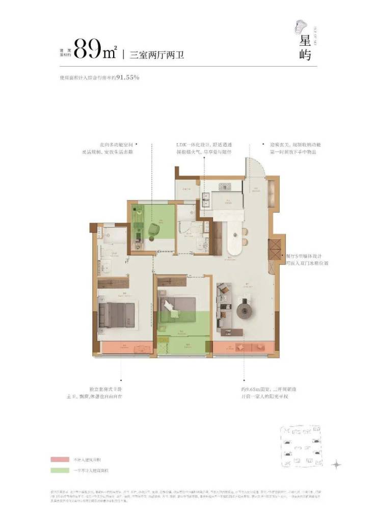 约89方起步三房,总价仅约195万起,补贴后房源总价185万起;