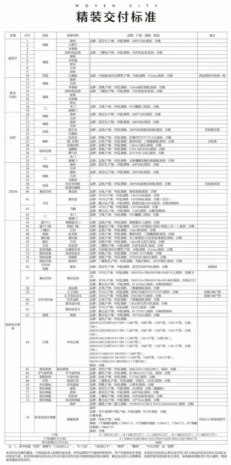 ①交付标准:明确房屋装修标准(如墙面涂料品牌、地板材质、卫浴品牌)、配套设施(如电梯品牌、停车位数量),避免使用“同等档次品牌”“优质材料”等模糊表述,若与宣传不符,可依据合同维权。