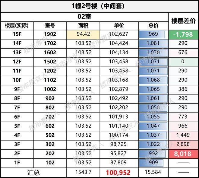 这意味着在预算允许的情况下,优先从高楼层往下选,是更划算的策略。