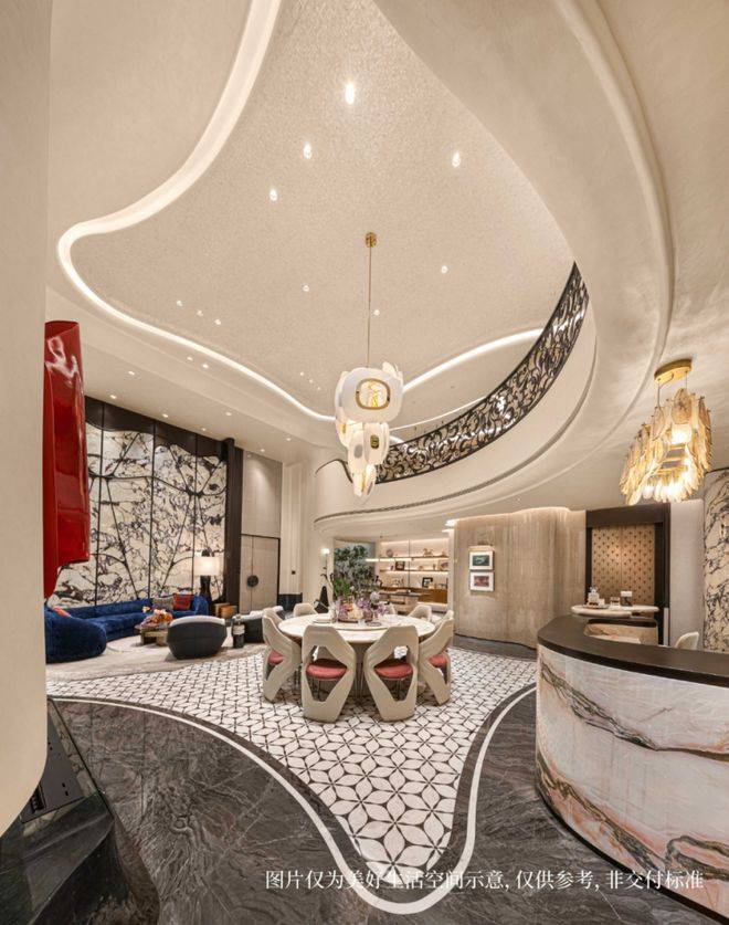 从气势恢宏的玉兰门庭,到摩登开阔的孔雀厅,归家的尊崇心境层层递进,天然石材的温润、艺术光影的雕琢,非遗文脉的新生……
