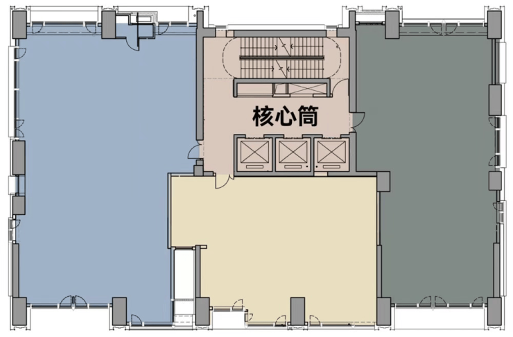 这样的设计带来的好处不仅仅只有它的超高得房率,我们可以看到,上图中的室内几乎无承重墙,业主可以根据自己的想法,自由的设计房间格局,大程度的发挥自己的想象!