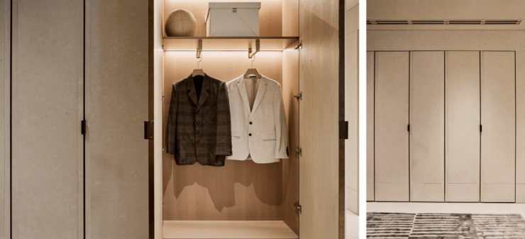 石材贴面玄关柜不仅实用,格调也是拉满了。从进门玄关开始,到各个卧室,超大进深的收纳柜,随处可见,收纳空间满分!