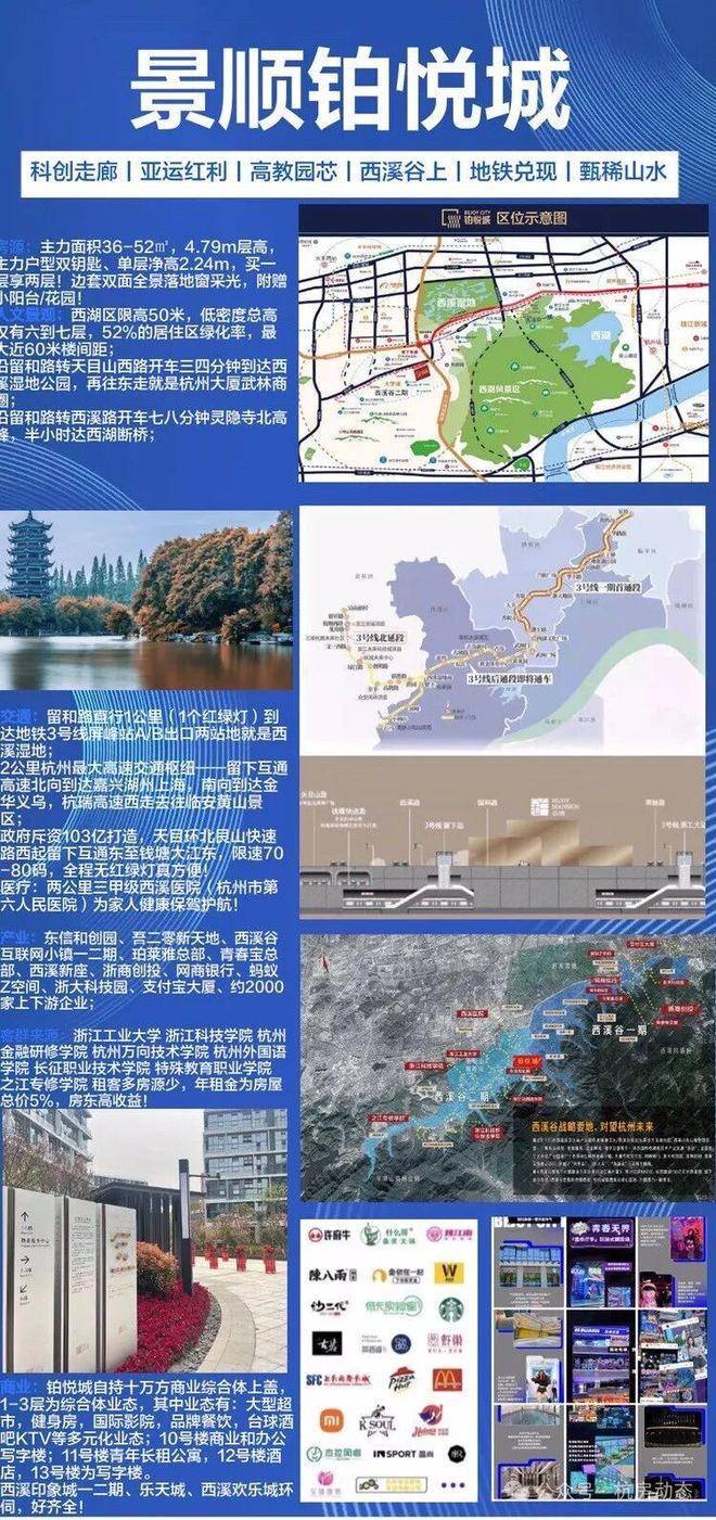 配套:铂悦城自持十万方商业综合体上盖,1-3层为综合体业态,其中招商业态有:超市,健身房,国际影院,品牌餐饮,潮流服装等多元化业态;10号楼商业和办公写字楼;11号楼青年长租公寓,12号楼酒店,13号楼为写字楼。西溪印象城一二期、乐天城、西溪欢乐城环伺,好齐全!