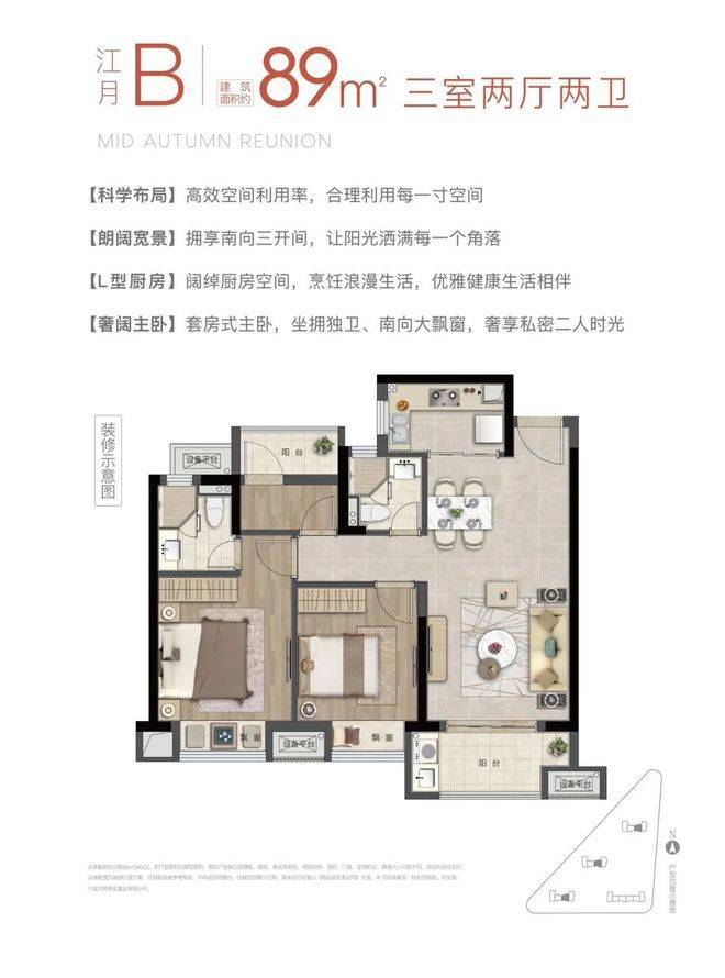 荣安奢配美宅,突破想象极限,定制美好young生活,打造理想的诗意生活!建筑面积约78㎡3室2厅,罕见3开间+双阳台+双飘窗设计,极致空间构造,重构宁南人居想象!规划建筑面积约89㎡3室2厅2卫,尊崇小户,多1卫功能,多一份生活私属与从容,自住时代