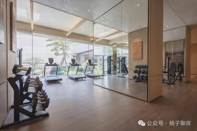 往里走整个下沉式庭院中,恒温泳池、健身房等应有尽有