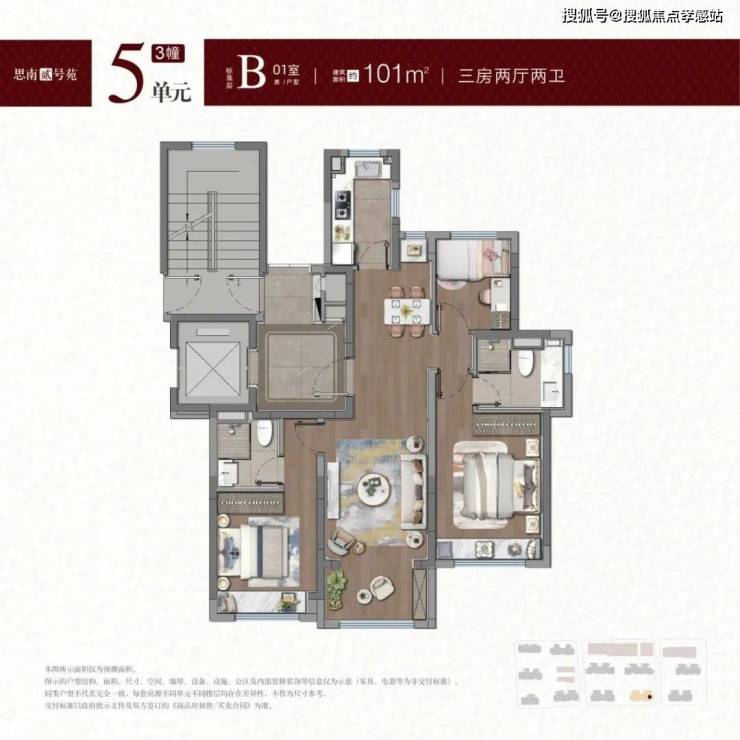 项目目前开放了建面约101-188㎡的三个样板间。