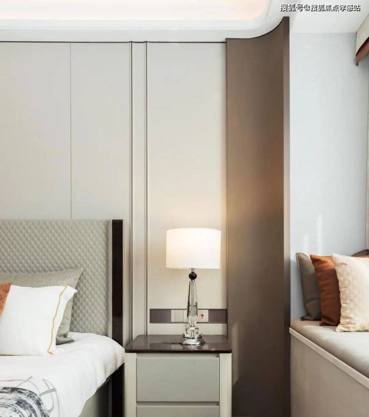 而到了卧室空间,灯光就显得更加温馨一点,更容易让人产生安全感,家的归属感拉满。