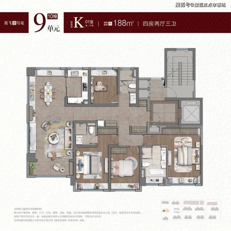 我们以建面约188㎡户型为例来解读: