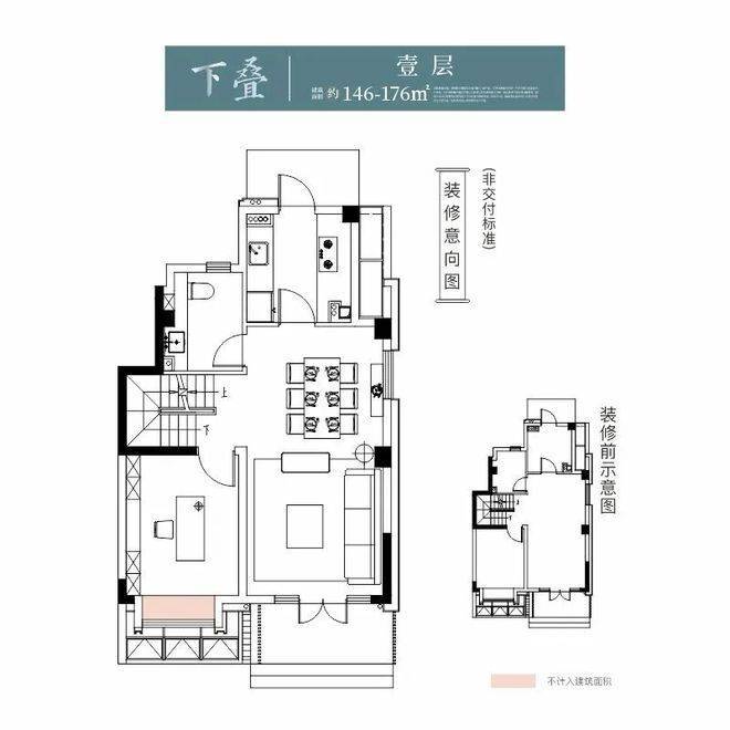 以叠墅产品为例:建面约110-176㎡的叠墅,为正统的上下叠产品,上下双层的空间构成,功能空间舒阔充分。