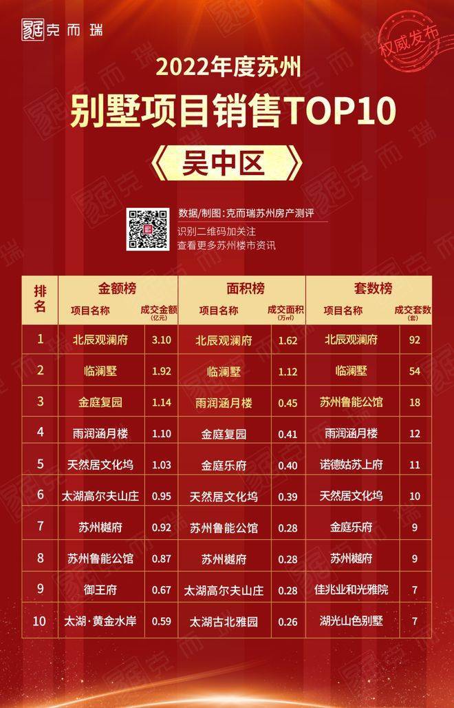 去年,北辰观澜府联排产品横空出世,凭借优秀的户型设计、景观打磨以及超高性价比、稀缺的联排产品,在克而瑞2022年度苏州别墅项目销售榜单中,登顶吴中区别墅销榜,成为金额、面积、套数三冠王;更是在苏州市区别墅销榜中,荣获面积、套数双榜前十的亮眼成绩。