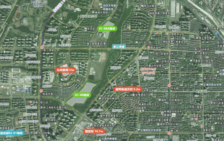 全新地块位于新江湾正芯,西临江湾城路,南接殷高东路,北贴在建的交大附中杨浦实验学校(在建);