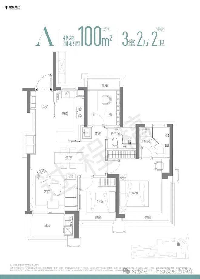 高层住宅共26层,一梯两户,得房率较高,空间灵活,部分户型有270°转角飘窗,建面约102平的三房户型,均价12.5万,总价约1300万元左右