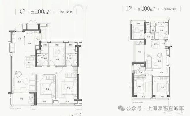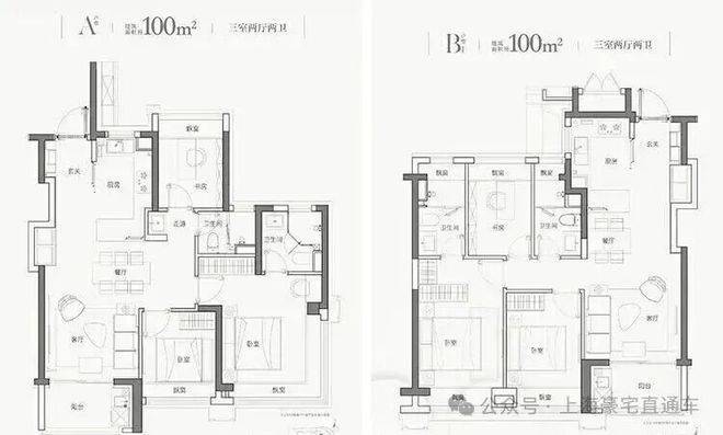 户型信息:高层100㎡小三房,别墅190-220㎡风貌别墅