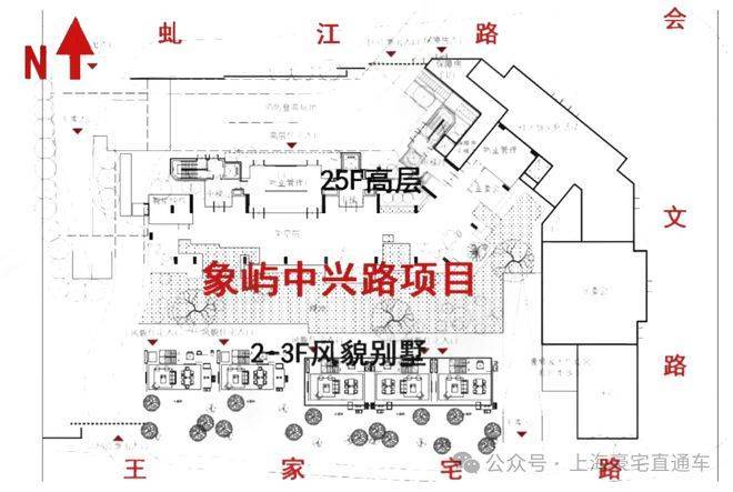 根据规划,项目拟建高层公寓+风貌合院别墅产品。高层为一栋25层高建筑,5-25层为商品房,一层6户,共126套,均为建面约100㎡小三房,该项目综合容积率2.67。