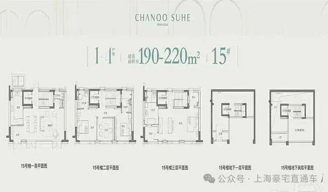 联排别墅共16幢2-3层,最大约15米面宽,双花园,海派老虎窗,地下层高6米,主力建面约191-223平(含地下室、露台、花园),实得约300-350平米,参考价18万/平米,总价区间 3200-4200万