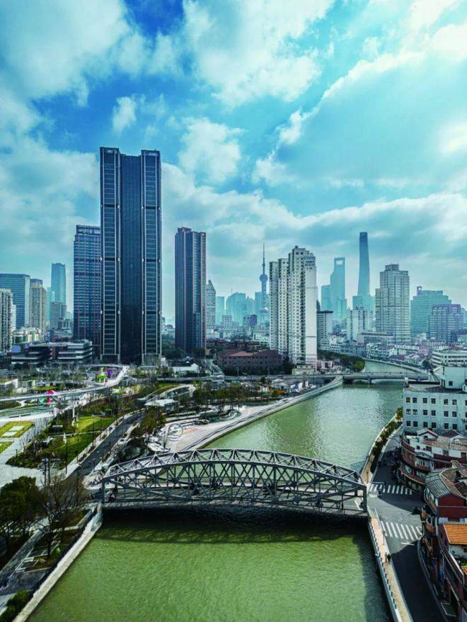 在2035规划中,苏河湾与陆家嘴、前滩等区域对标,致力于打造成为金融、商贸、文化融合的高能级城市客厅。与外滩、陆家嘴、北外滩共同构成了一江一河滨水发展带。