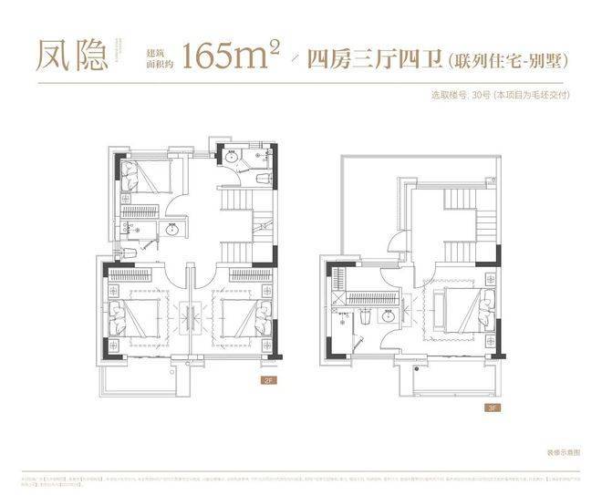 品质惊艳。项目没有小高层和洋房产品,保障了圈层的统一。借鉴江南园林建筑理念,打造建面约139-165㎡叠加和联排,功能性和尺度感完美结合。