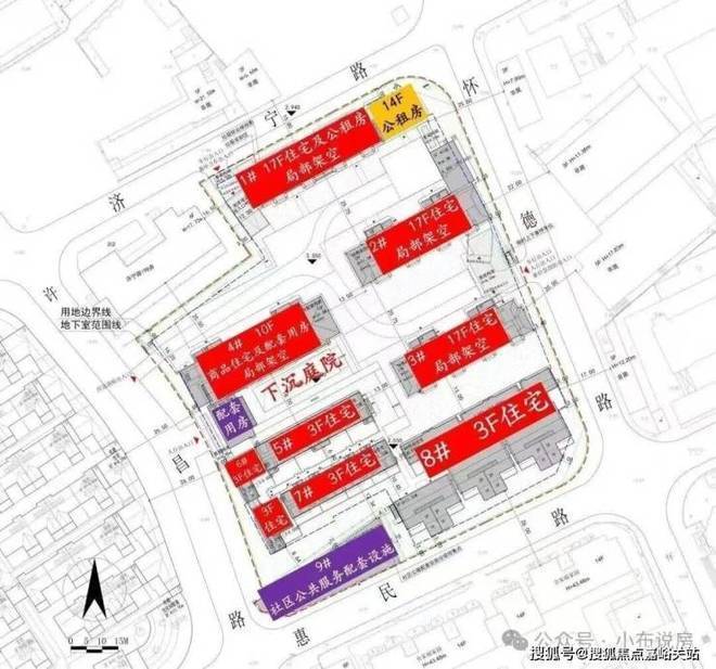 根据方案,项目拟建1栋10层小高层、3栋17层高层及3幢风貌别墅产品.具体布局方面,1#、2#、3#楼栋为17层高层住宅,首层局部采用架空设计;1号楼东侧配有一栋14层公租房;4#楼为10层洋房产品及部分配套功能空间;5#、6#、7#、8#楼栋均为风貌别墅;9#楼则规划为社区公共服务配套用房.