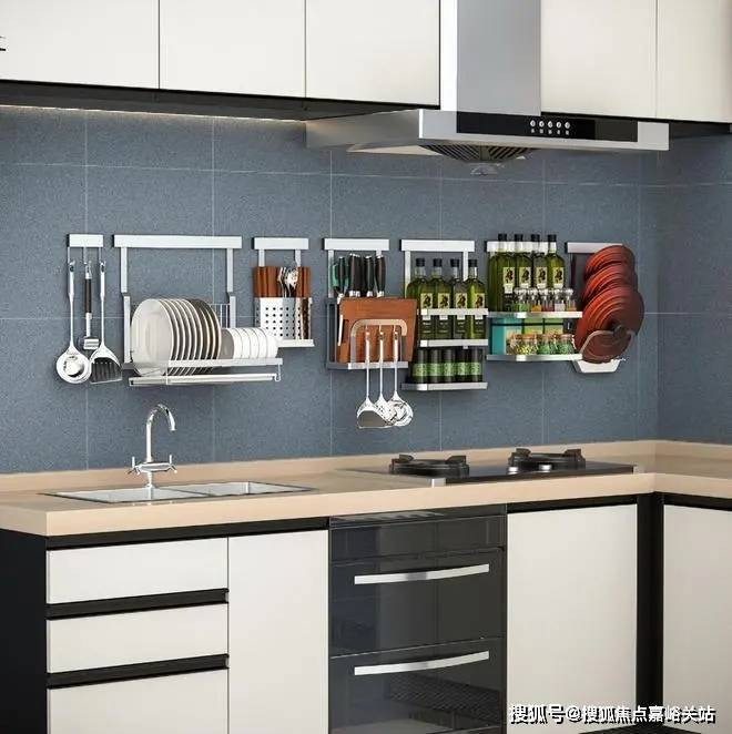 Knives, seasoning bottles and dishcloths are all on the wall. When washing vegetables, you can reach out and take them. There's no need to squat and rummage through the drawers anymore!
