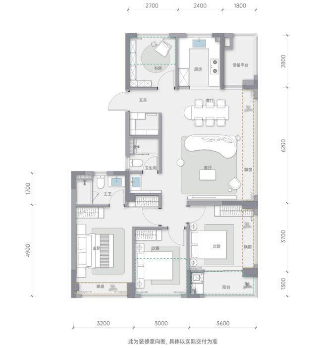 看似是经典的四房边厅户型,其实也做了迭代
