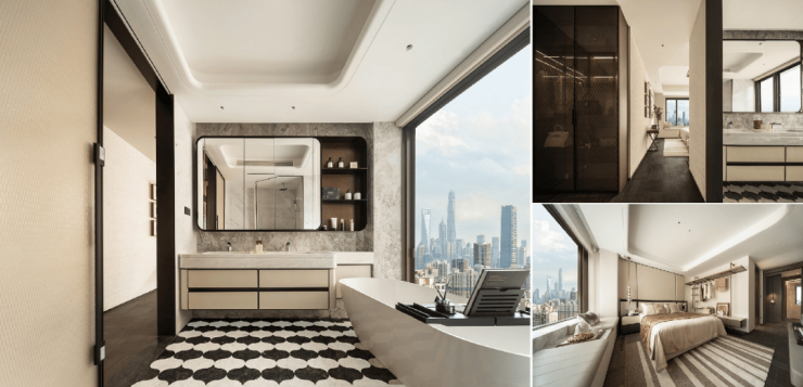 瞰景主卧| 观景飘窗主卧套房,六扇门步入式衣帽间,尽瞰虹口百年