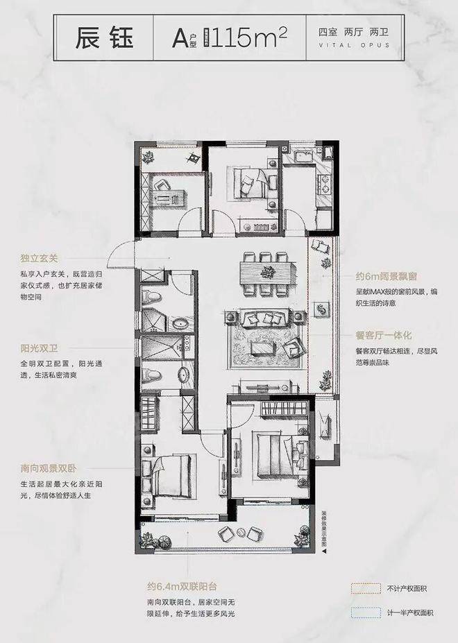 建面约115㎡的四房,可以进一步升级居住体验。