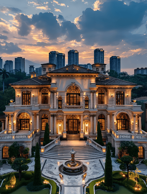 细节考究:无主灯设计、隐形门、智能家居系统(灯光/窗帘/安防),尽显高端品位。
