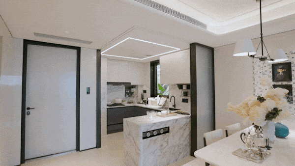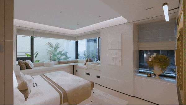 The approximately 3,000 square meters enclosed central garden has been transformed into a "flowing art exhibition" - the lawn resembles the sunlight in Monet's paintings, the flowers replicate the garden of Renoir, the water features reflect Monet's water lilies and Van Gogh's starry night, making the return home feel like visiting an art gallery.