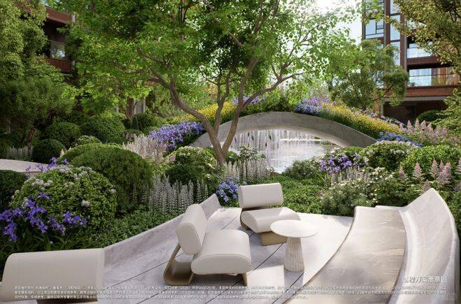 约3000㎡围合式中央花园,被打造成“流动的艺术展”——草坪似马奈笔下的日光,繁花复刻雷诺阿花园,水边光影映着莫奈睡莲与梵高星空,回家就像逛美术馆。