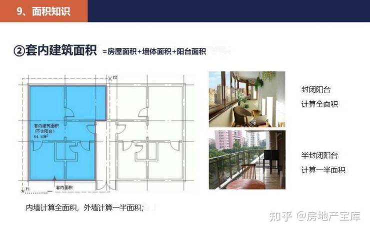 套内建筑面积=套内使用面积+套内墙体面积+阳台建筑面积