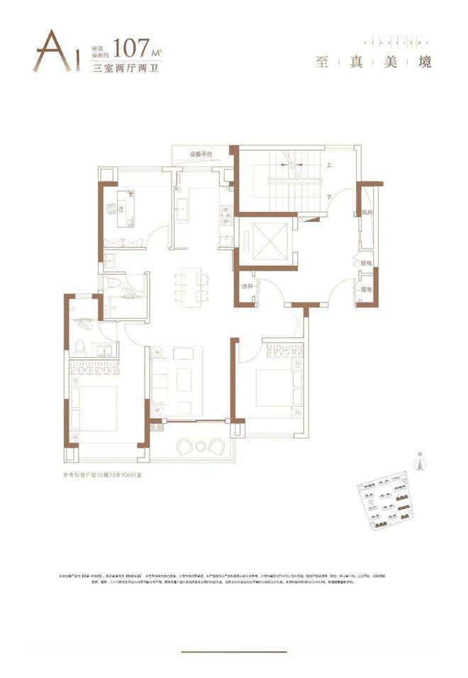 该户型在约107㎡户型基础上有所提升,增加了1个北向卧室空间,更适合三代同堂或多孩家庭改善居住~