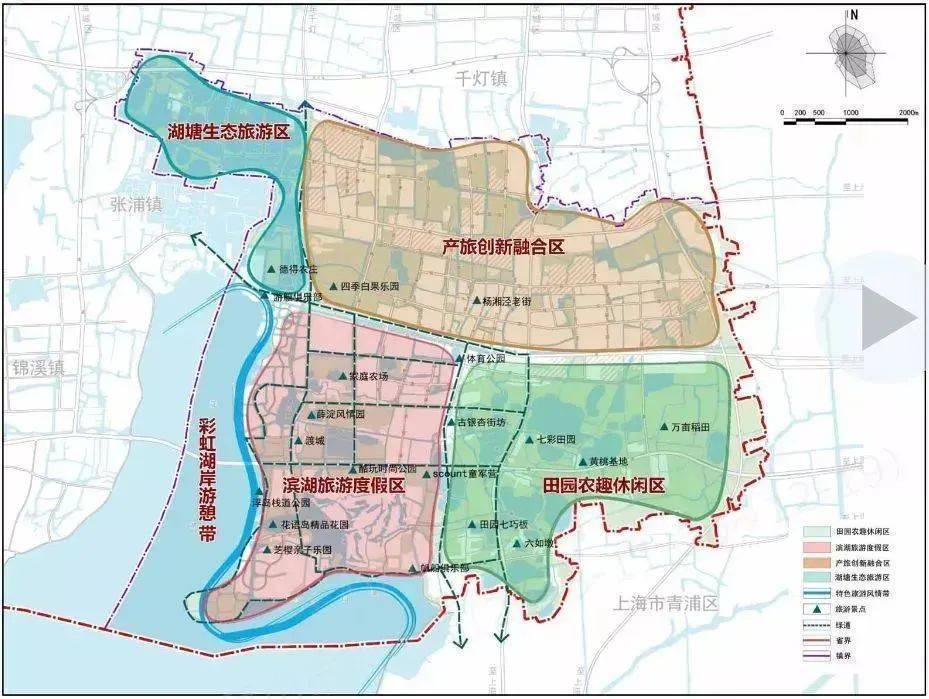 在生态旅游产业上,将突出度假特点发展全域旅游。打造对接环淀山湖国际化湖区功能(青浦片区)和昆山南部旅游片区功能,实现战略功能协同与错位发展,聚焦“运动时尚”、“生态田园”两大旅游度假产品,将打造高级湖区。