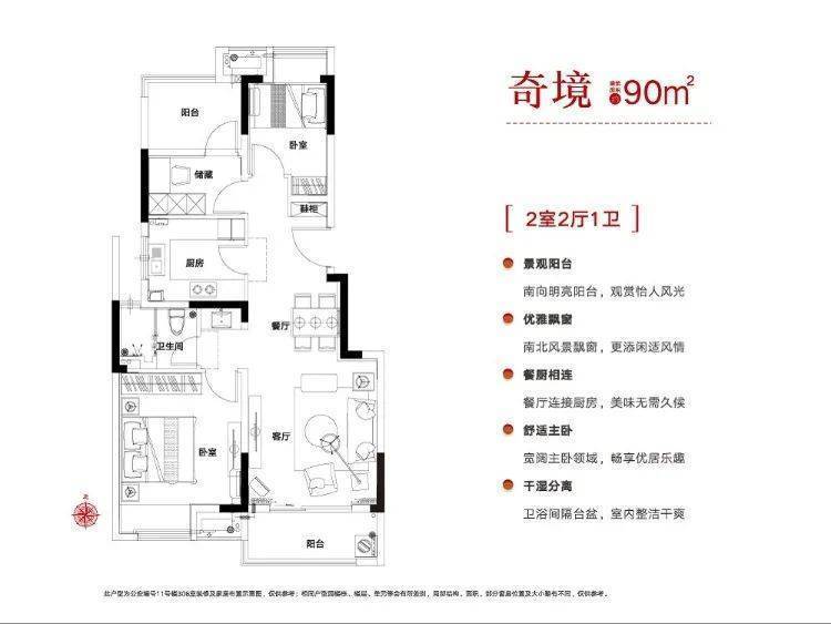 建面90㎡2+1室两厅一卫,总价约为170万左右↓↓↓