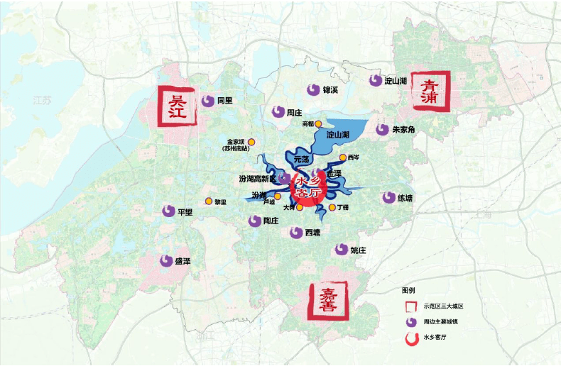 淀山湖区域东有虹桥商务区的加持,西有长三角一体化示范区的带领,承接着上海西部门户的重要角色,是推动长三角一体化发展的重要站点。