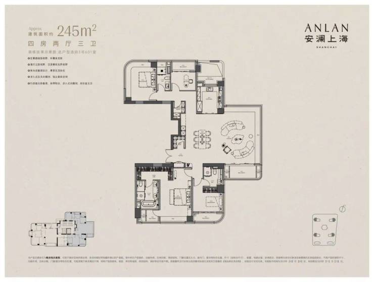 建面约245㎡,总价3700-4800万,单价15.1-19.6万/㎡;