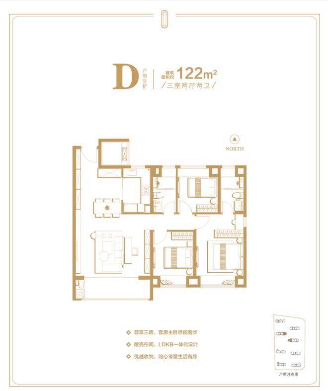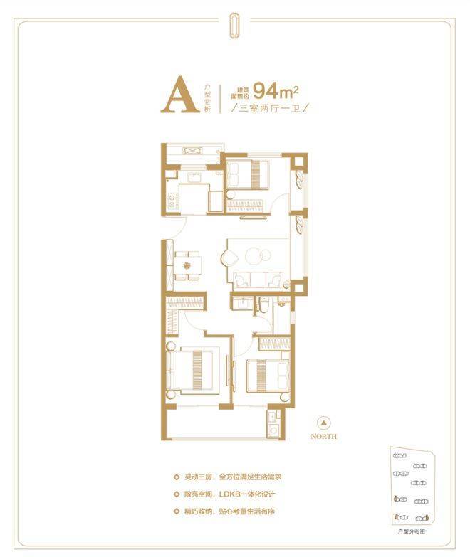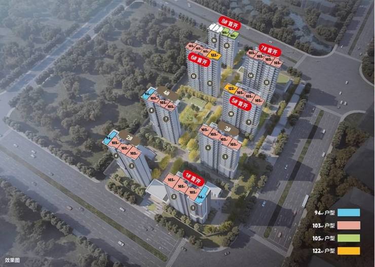 项目共计规划8栋14-18F高层住宅,规划可售住宅套数528套,主力建面约94-122㎡3房,功能齐全,足够匹配不同家庭结构的需求。