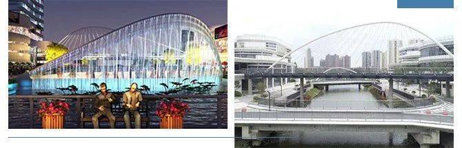 项目以自然河道分隔为东、西两块,河道上架设了网红星光玻璃廊桥、水幕舞台桥惯通东西两区。以东西流动的双庭空间,吸引人气聚集;以流动的楼宇,彰显时代魅力;流动的街巷渗透交织,塑造诗意的购物休闲空间,同时各处廊桥紧密联动,确保客流通达性。