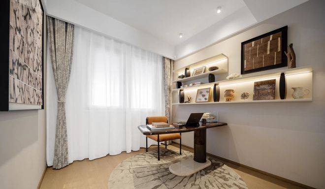 仁恒·溪棠建筑面积约119㎡户型空间整体以大地色为主色调,搭配暖咖与水绿色,温柔舒适的包裹感如烟弥散,恰似秋日的温存唤醒居家的愉悦与归属感。
