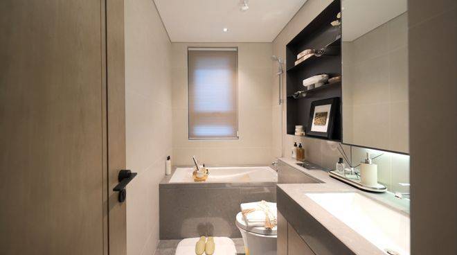 厨房上轨道移门、暗藏式拉手、橱柜下方净水器以及垃圾粉碎器插座预留、木渎首例全加压供水;卫生间延伸台面、壁挂式马桶、无门槛设计、防潮反坎、仁恒独有Z字型隐蔽通风槽、标配浴缸;客厅全明采光设计、三玻两腔中空玻璃、通高门、“回字形”吊顶、感应灯预留……