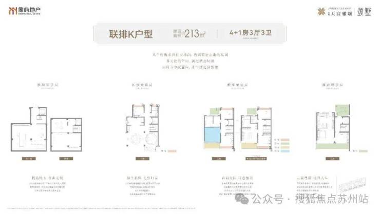 ▸ 别墅:125㎡叠墅(四开间朝南)、230㎡联排(带约30㎡庭院)68。