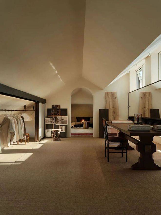 契合中国传统院落居住哲学理念,以“外紧内松”空间设计手法,对风貌别墅空间尺度进行当代拓新,让空间服务于生活。外紧-通过外部百年巷道肌理活化、建筑错落排布景筑交融,打造美而精的体验;内松-宅院内以多重庭院、立体花园、大落地窗等实现室内尺度拓新,给家人更多停留空间、打造建筑会呼吸的松弛感。